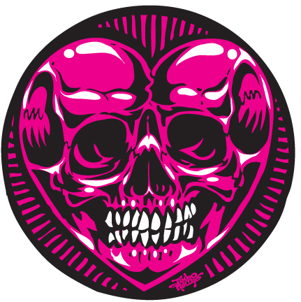 Skull Heart full silkscreened round sticker