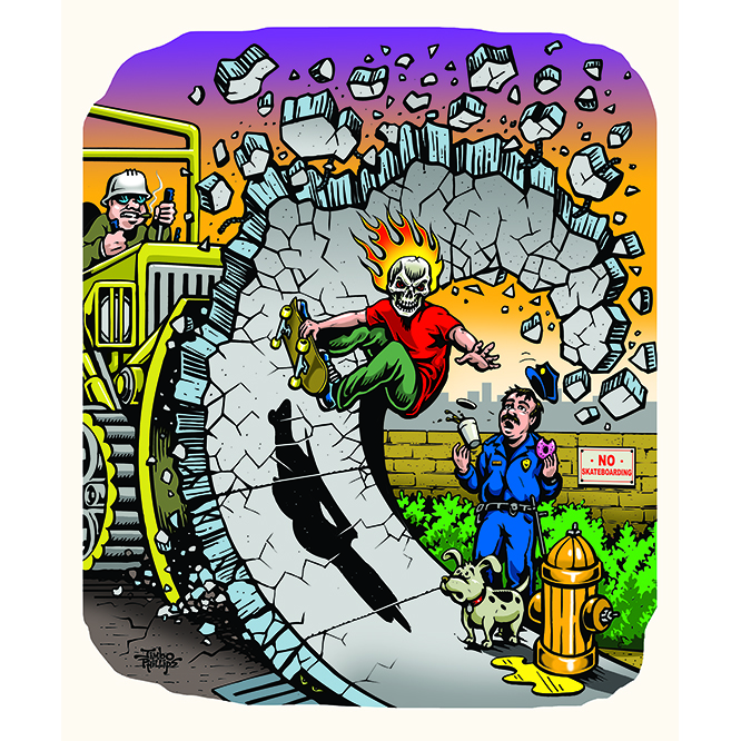 High quality full color shaped vinyl "Concrete wave" sticker with artwork created by Jimbo Phillips, This full color artist sticker is approximately 4.5" X 4" and a must have! thanks for viewing!