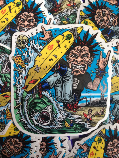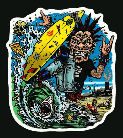 Jimbo Phillips SURF PUNK full color shaped vinyl sticker