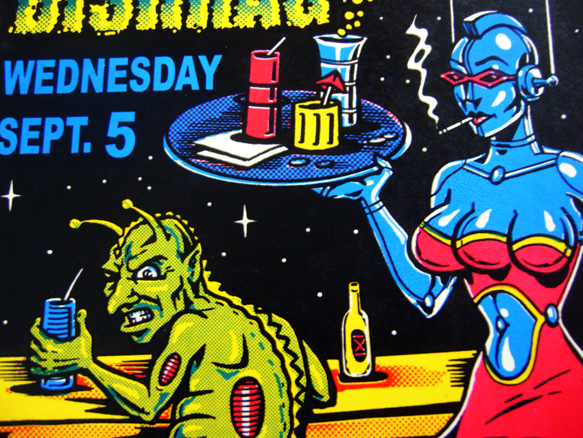 Highly collectible screen printed LEVELER Dish Rag music poster with artwork created by legendary extreme sports artist Jimbo Phillips, famous for his incredibly extensive line of graphics spanning from Santa Cruz Skateboards, Bell Helmets, Volcom and so much more. This 100% signed by the artist poster is approx. 18"x11" and in great condition. A must have! (item will be carefully shipped) thanks for viewing!