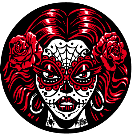 High quality silkscreened vinyl Chica sticker with artwork created by legendary extreme sports artist Jimbo Phillips, famous for his incredibly extensive line of graphics spanning from Santa Cruz Skateboards, Bell Helmets, Volcom and so much more, This full color artist sticker is approx. 5" x "2.25" a must have! thanks for viewing!