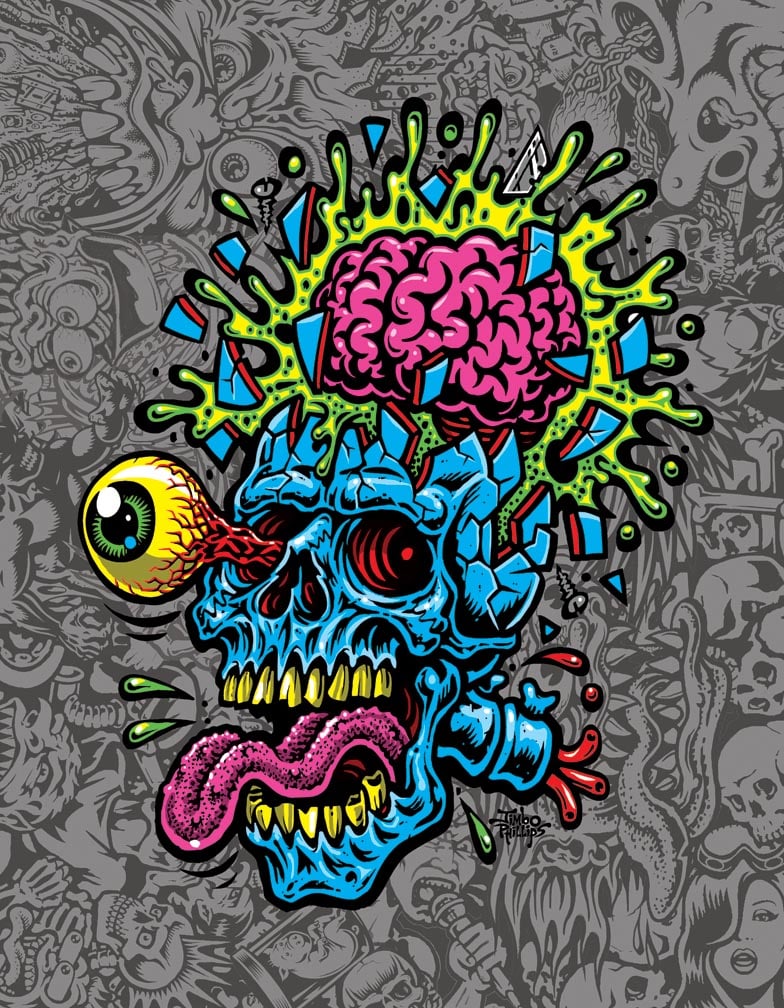 Super vibrant, collectible and signed by the artist full color 8" x 10" SKULL BLAST print, printed on quality matte finish card stock with giclée fade resistant ink, art created by legendary extreme sports artist Jimbo Phillips, famous for his incredibly extensive line of graphics spanning from Santa Cruz Skateboards, Bell Helmets, Volcom and so much more. Item will be carefully shipped rolled never folded, thanks for viewing!