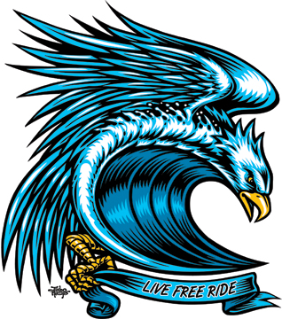 High quality full color shaped vinyl LIVE FREE RIDE sticker with artwork created by legendary extreme sports artist Jimbo Phillips, famous for his incredibly extensive line of graphics spanning from Santa Cruz Skateboards, Bell Helmets, Volcom and so much more, This full color artist sticker is approx. 5" x "2.25" a must have! thanks for viewing!