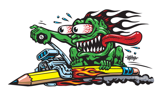 Jimbo Phillips PENCIL GREMLIN full color shaped vinyl sticker
