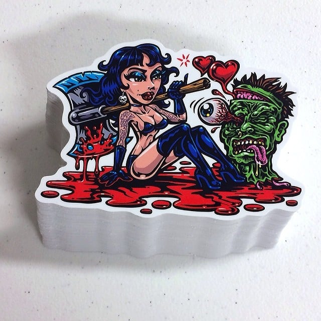 High quality full color shaped vinyl AXE CHICK (larger) sticker with artwork created by legendary extreme sports artist Jimbo Phillips, famous for his incredibly extensive line of graphics spanning from Santa Cruz Skateboards, Bell Helmets, Volcom and so much more, This full color artist sticker is a nice large size at approx. 5.5" X 4" and a must have! thanks for viewing!